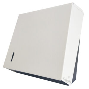 Dispenser aço inox escovado para papel higiênico em rolo.