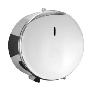 Dispenser aço inox escovado para papel higiênico em rolo.