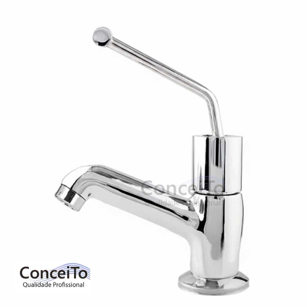 Torneira clínica alavanca bica móvel de mesa. Com arejador dupla função, permite acionamento pelo cotovelo, facilitando o acionamento, fabricada em metal cromado proporcionando durabilidade.