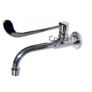 Torneira clínica alavanca de parede bica móvel, contém um acionamento por cotovelo evitando a contaminação cruzada, pois evita o contato direto com o produto.