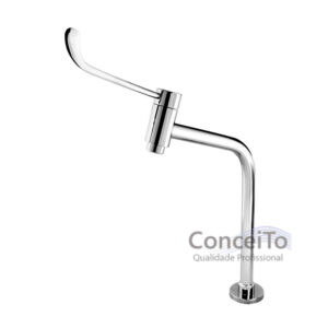 Torneira clínica alavanca de parede bica móvel, contém um acionamento por cotovelo evitando a contaminação cruzada, pois evita o contato direto com o produto.
